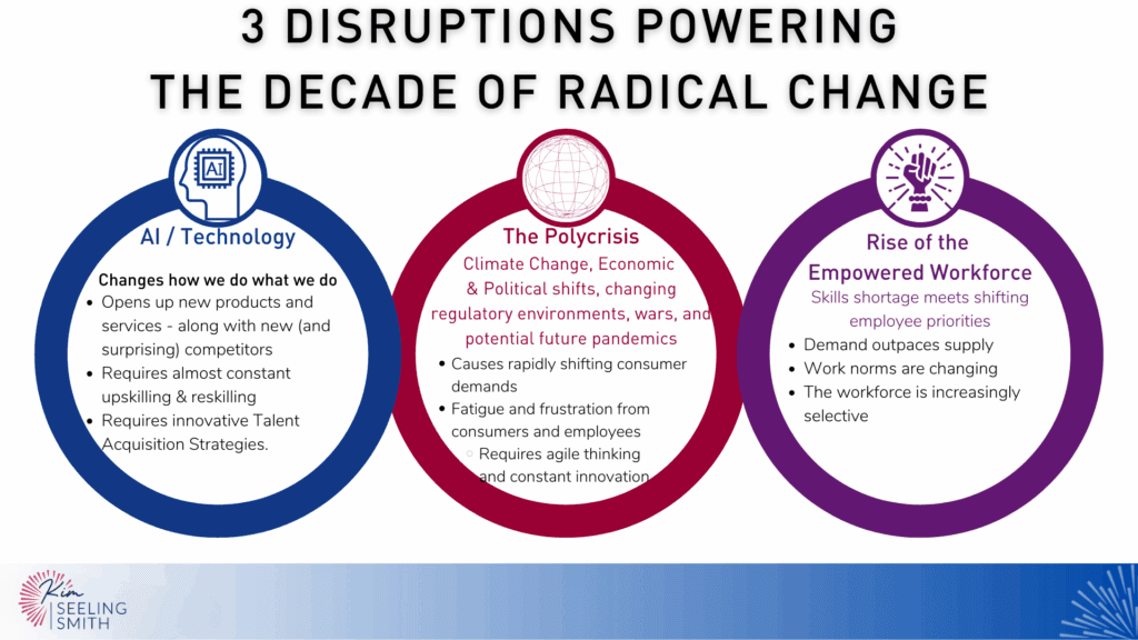 Kim Seeling Smith is an award-winning Business Futurist who deciphers emerging trends across business, the workforce and leadership and helps organizations and individuals remain relevant, resilient and ready for anything. She developed the 9 Currencies of Choice in 2010 from reverse engineering over 5,000 exit interviews and has pressure tested it every year since against the latest international research. Her latest publication, The C-Suite’s AI Playbook: From Pilot to Performance, provides proven pathways to integrate AI, unlock talent potential, and lead with confidence. Download it here.